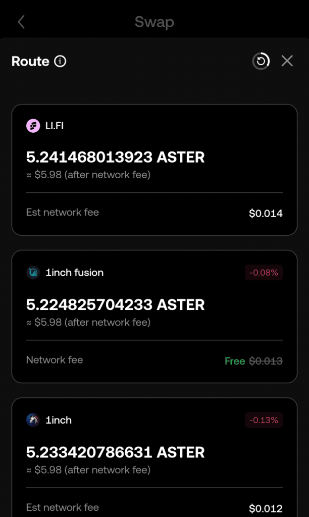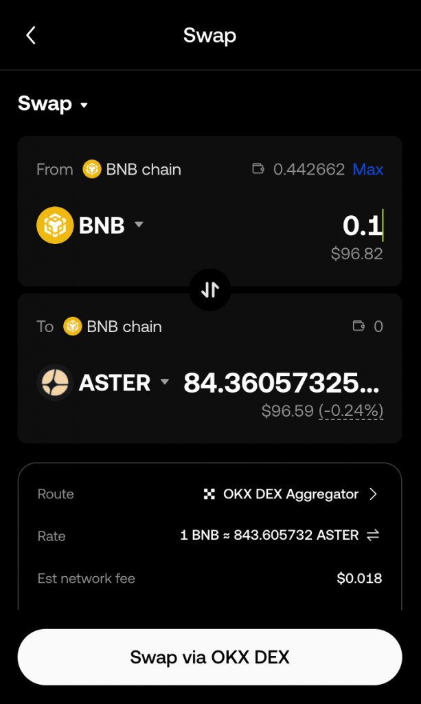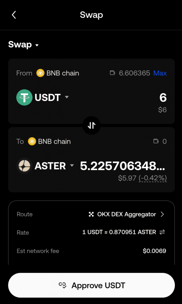 若不熟鏈上,新手也能先在 CEX 買,再提到錢包參與 Aster 生態,適合想用信用卡/法幣入金、操作更簡單的用戶。