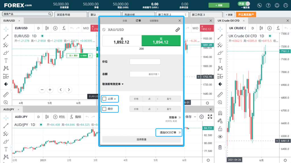 嘉盛交易平台的自由度很高,工作區和圖表都可以很方便地自定義。