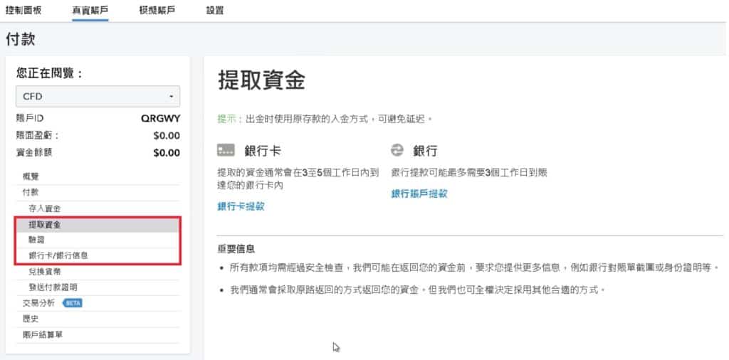 提示:出金時使用與入金時相同的方式,可避免延遲。