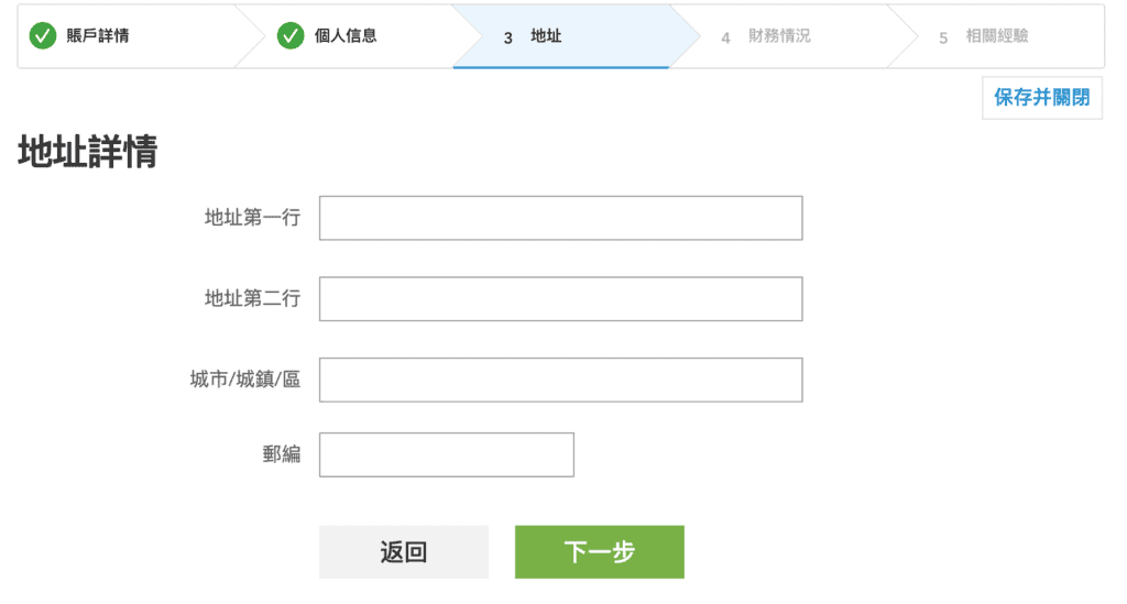 Step6:填寫相關經驗,主要是和投資相關的實際操作、教育和工作經驗,按實際填寫即可,填寫完繼續點擊「下一步」;