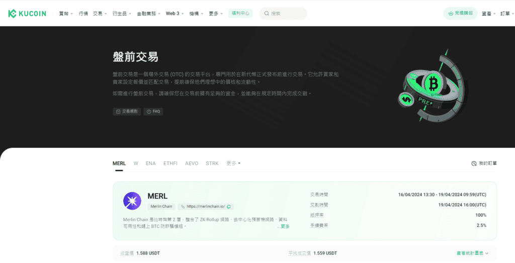 這個功能我之前沒用過,我是幣安的重度用戶,沒在幣安或是別的交易所上看到這個功能,也是透過 KuCoin 才知道盤前交易。